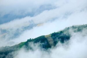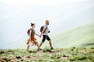 Coupe traveling in the mountains
